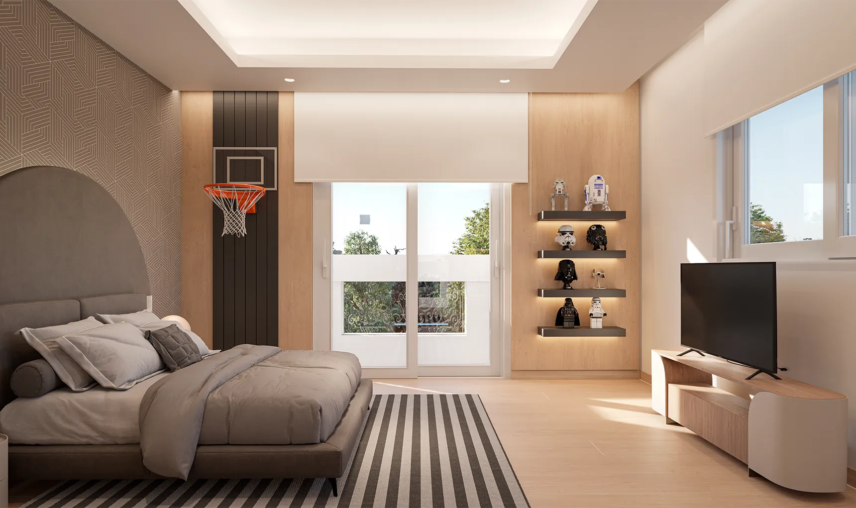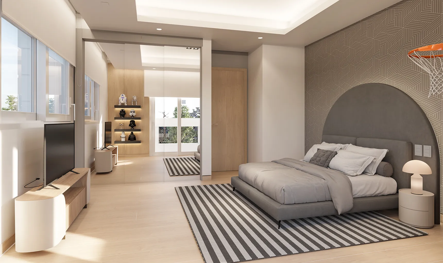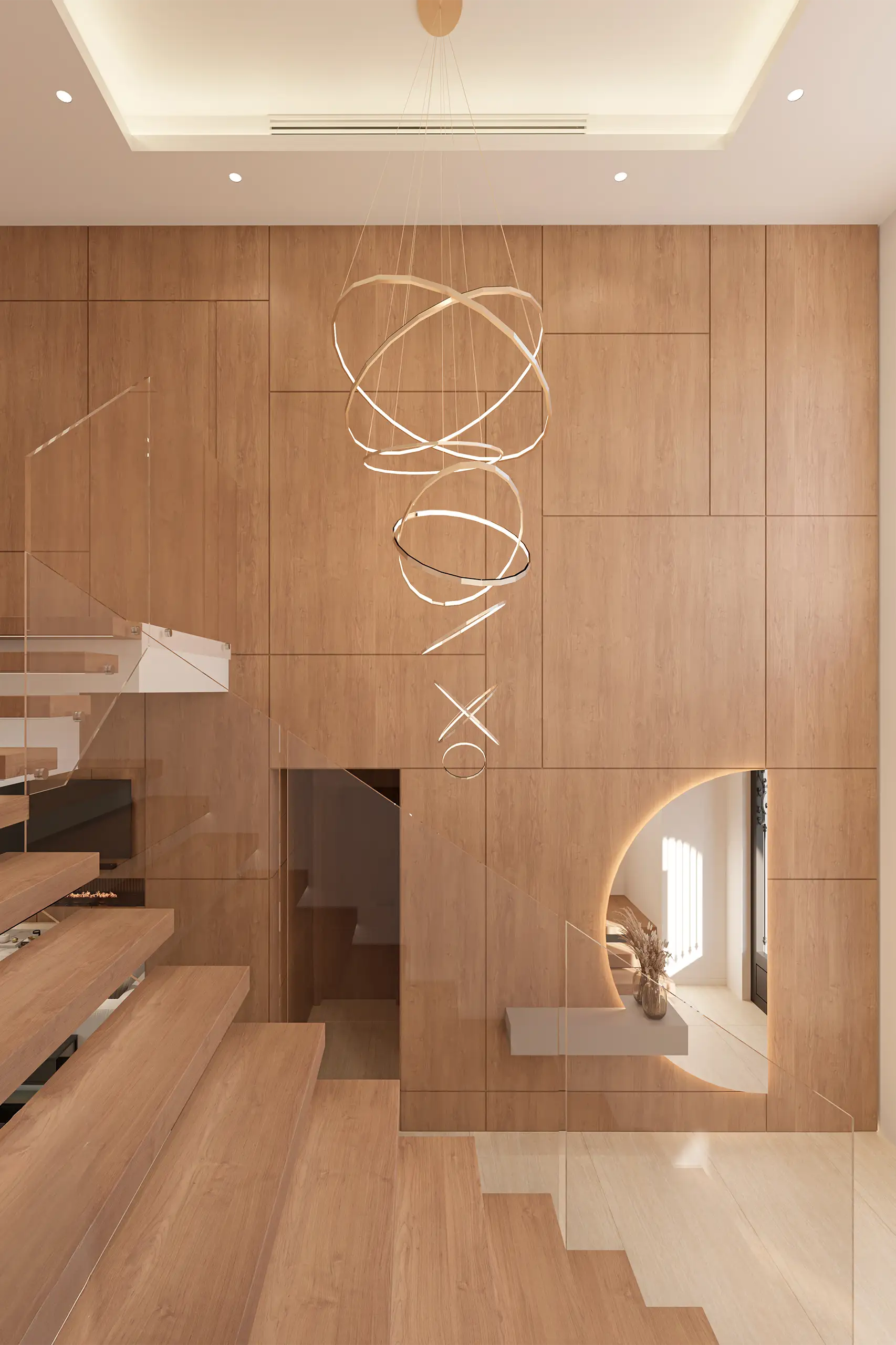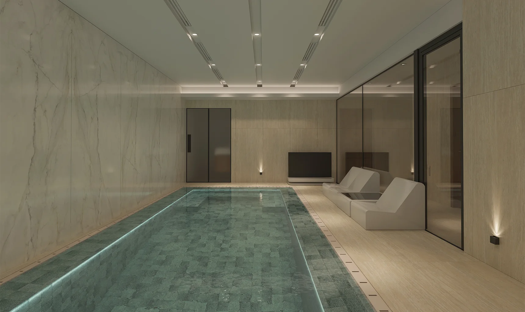 The basement is conceived as a space for relaxation and wellbeing, equipped with an indoor pool and a spa area, designed to offer an experience of comfort and exclusivity. On the upper floor, the bedrooms ensure privacy and tranquility, consolidating a balanced and functional layout.
