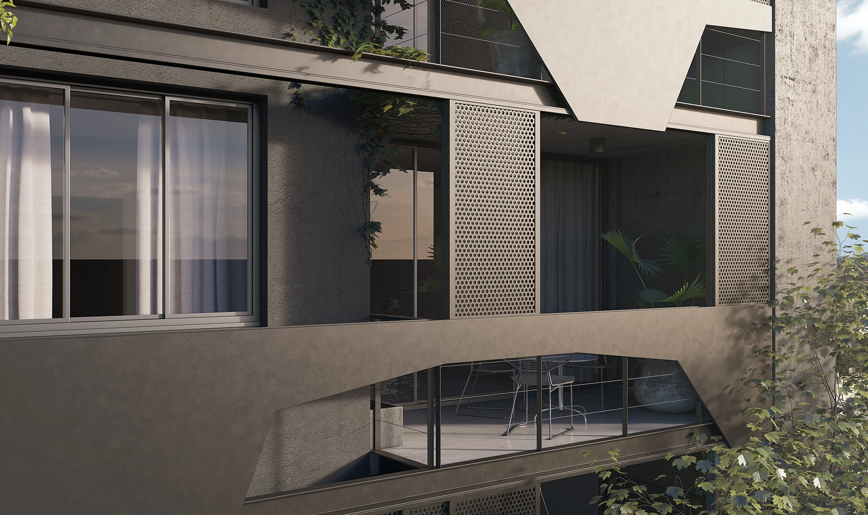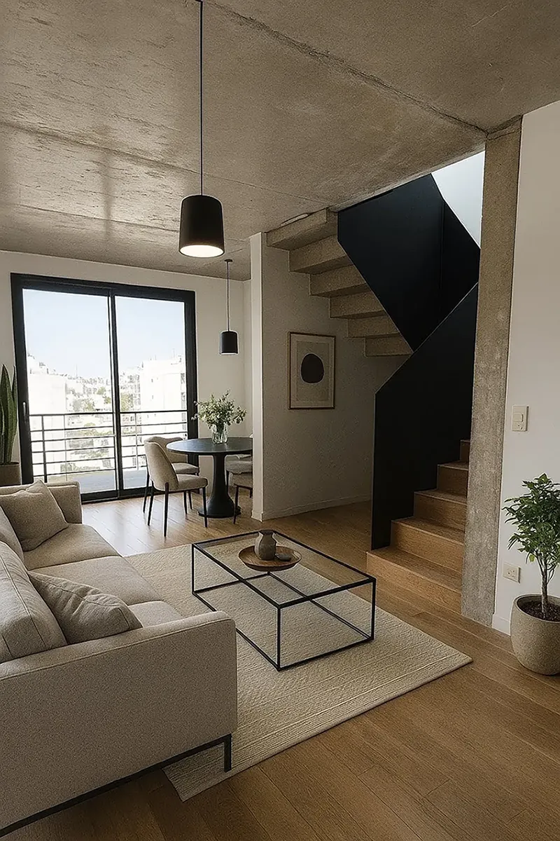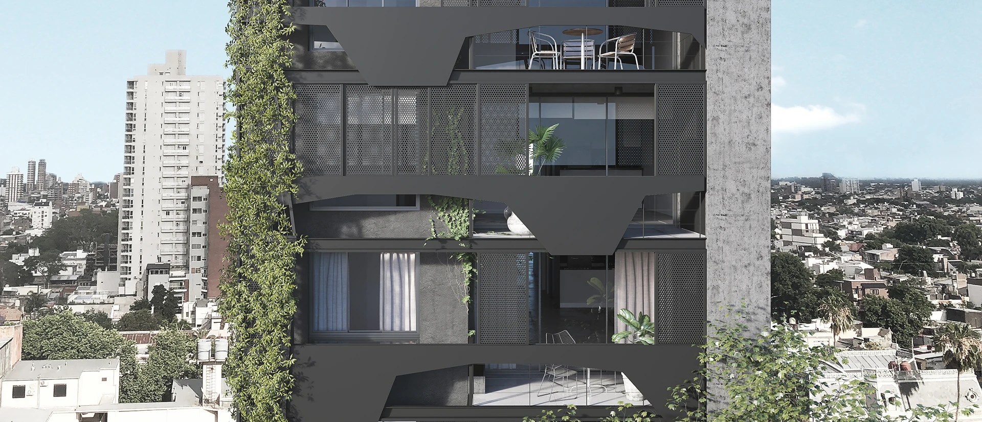 El edificio cuenta con 8 niveles de departamentos en semipiso de 3 y 4 ambientes, todos diseñados para brindar máximo confort, privacidad y calidad espacial. Las unidades superiores, en formato dúplex y triplex, incorporan terrazas privadas con vistas abiertas, que extienden el verde del jardín y de los parques cercanos hacia lo más alto.