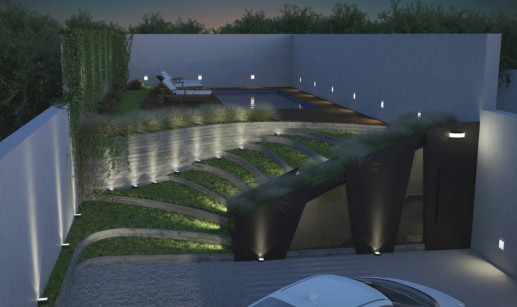 La planta baja, de gran altura, marca una bienvenida imponente: revestimientos en mármol, vidrio y madera, junto a un lobby elegante y 240 m² de jardines parquizados que se integran armónicamente con una piscina climatizada y solárium, conformando un paisaje urbano donde la naturaleza cobra protagonismo.